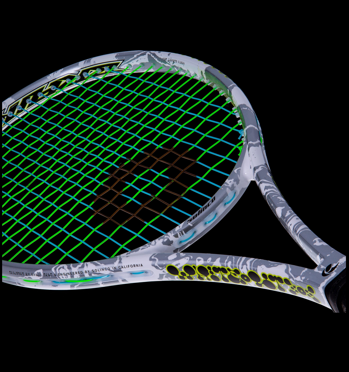 The Solinco x Brain Dead Whiteout V2 is built for the disruptors—those athletes who bring edge, style, and intensity to the court. Using Solinco’s Whiteout V2 as the base, it delivers elite control, feel, and power, equipped with all of the proprietary technologies that define its performance. Brain Dead takes it further with a bold AcidChrome finish, turning our high-performance racquet into a statement piece. Pure edge. Pure dominance.